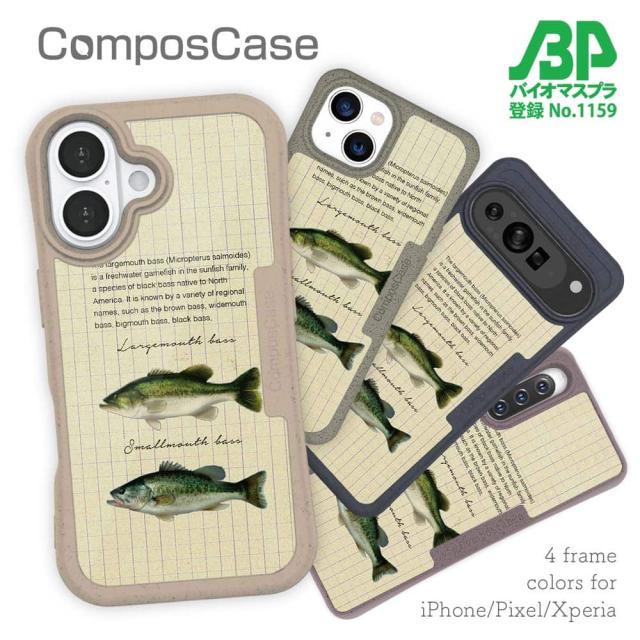 コンポスケース & 着せ替え デザインシート セット iPhone16e ケース iPhone16 Pro iPhone16 iPhone15 Pro iPhone15 iPhone14 Pro iPhone14 iPhone13 釣り 魚 ルアー オオクチバスとコクチバス