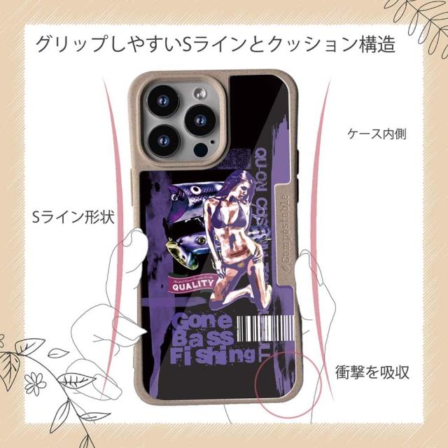 コンポスケース & 着せ替え デザインシート セット iPhone16e ケース iPhone16 Pro iPhone16 iPhone15 Pro iPhone15 iPhone14 Pro iPhone14 iPhone13 釣り 魚 ルアー Gone Bass Fishing パープル