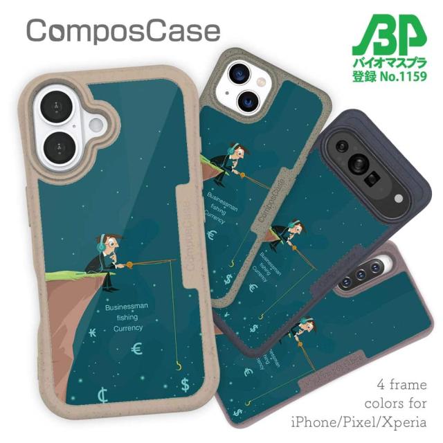 【楽天スーパーSALE 50%OFF】 コンポスケース & 着せ替え デザインシート セット iPhone16e ケース iPhone16 Pro iPhone16 iPhone15 Pro iPhone15 iPhone14 Pro iPhone14 iPhone13 釣り 魚 ルアー Businessman fishing Currency