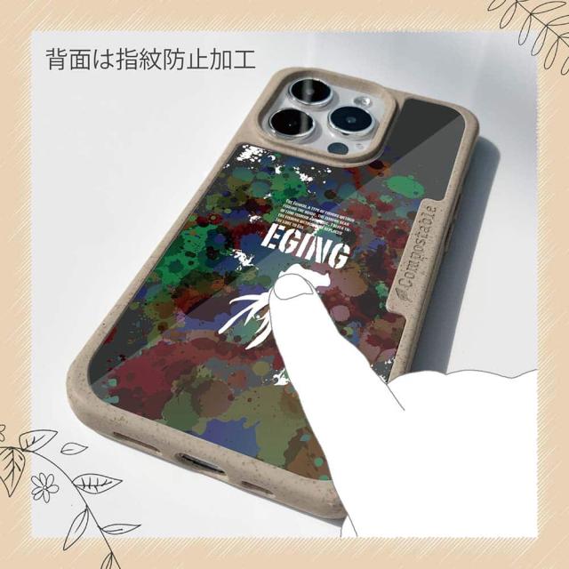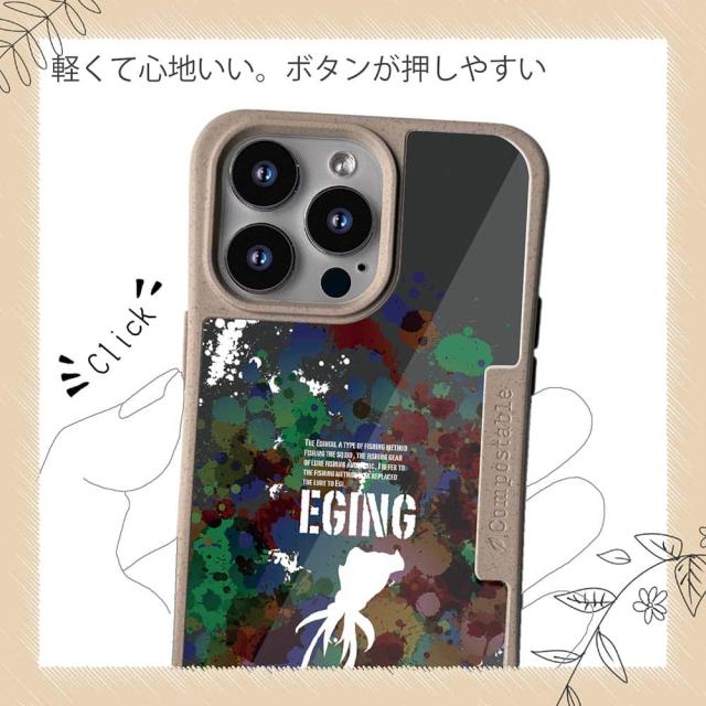| ケースについて | 背面の内側に入れ込むデザインシートで、シーンに合わせて着せ替え可能。また、グリップしやすいクッション構造で、本体重量は約35gと軽減化を実現。さらに衝撃に強いSライン形状、究極に押しやすいボタン設計(切り込みが入ることで押し込む力を軽減)、背面のカメラ・レンズを保護する高さ設計となっております。生分解性プラスチック素材ながらも着脱もしやすく、割れない・指紋防止加工を施しています。 |