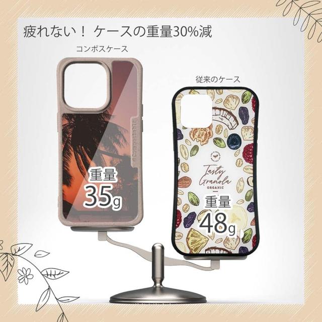 | 商品説明 | コンポスケースは、環境負荷低減を目的に開発されたスマホケース。従来のスマホケースと比べ、CO2排出量を50%削減できます。しかも、循環型社会に対応した素材を使ったケースです。 フレームカラーが4色からお選び頂けます。※コンポスケースとデザインシートが1つずつのセット商品となります。商品画像の15枚目と16枚目は、スマホの背景色によるサンプルです。ケース自体の背面は透明なので、スマホの背面色によってこのような色になるという例です。背景の色が選べる訳ではありませんので、予めご了承下さいませ。 モニターキャンペーン特別デザイン!当店のデザイン、印刷技術を皆様に知って頂くためのキャンペーン商品です。 ![]() |