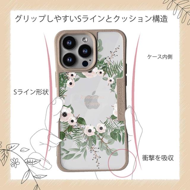 | 商品説明 | コンポスケースは、環境負荷低減を目的に開発されたスマホケース。従来のスマホケースと比べ、CO2排出量を50%削減できます。しかも、循環型社会に対応した素材を使ったケースです。 フレームカラーが4色からお選び頂けます。※コンポスケースとデザインシートが1つずつのセット商品となります。商品画像の15枚目と16枚目は、スマホの背景色によるサンプルです。ケース自体の背面は透明なので、スマホの背面色によってこのような色になるという例です。背景の色が選べる訳ではありませんので、予めご了承下さいませ。 シートのデザインは、白い花たちで作ったリースのデザイン。 ![]() |