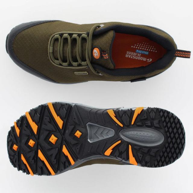 ムーンスターのメンズアウトドアスニーカーです。ムーンスター独自の透湿防水テクノロジー「Shut Dry(R)」を搭載しています。靴内への水の浸入を防ぎ、湿気は外に逃がす透湿防水機能で1年中快適な履き心地です。様々なアスレチックライフスタイルで活躍します。ミッドソールには反発弾性力が優れたEVAを採用し、アウトソールにはすり減りにくい耐久性の優れたラバーを採用しています。その他、快適機能が満載の高機能シューズです。トレッキングやキャンプ、アスレチックなどアウトドアレジャーはもちろん、屈曲性にも優れているのでウォーキングやタウンユース、旅行などにも幅広く活躍します!ヒールの高さは4.0cmで、重量は26.0cmで片足約360gです。