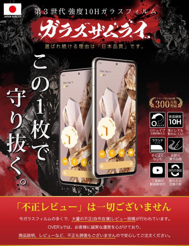 Google Pixel 8 Pro 全面保護 ガラスフィルム 保護フィルム フィルム 全面吸着タイプ 10H ガラスザムライ グーグルピクセル 全面 保護 液晶保護フィルム OVER`s オーバーズ 黒縁 TP01