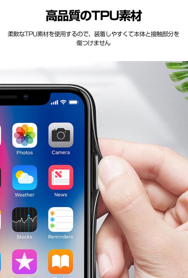側面にはソフトなTPU素材を採用、側面からの衝撃をやさしく吸収してくれます。 側面が柔らかいので着脱も容易です。