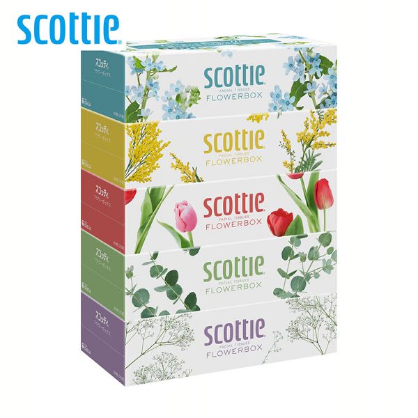 ティッシュ ティッシュペーパー ボックス スコッティ フラワーボックス 250組(500枚) 5箱パック 41331 ティッシュ ティッシュペーパー フラワーボックス 大容量 長持ち コンパクト 250組 5箱パック SCOTTIE スコッティ 5箱で約8.3箱分 かさばらない ティッシュペーパー