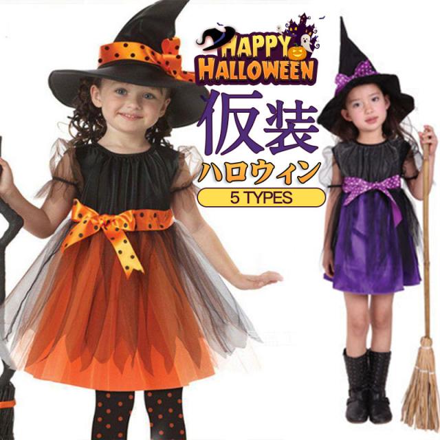 【~4/20まで P2倍+限定クーポン】 ハロウィン コスプレ 子供 仮装 キッズ かっこいい 2点セット 大人 衣装 ワンピース 帽子 キャップ 女の子 かぼちゃ 魔法