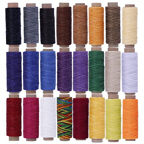 Andyamy レザークラフト 蝋引き糸 ロウ引き糸 手縫い 紐 ワックスコード 平紐 タイプ 豊富な24色セット