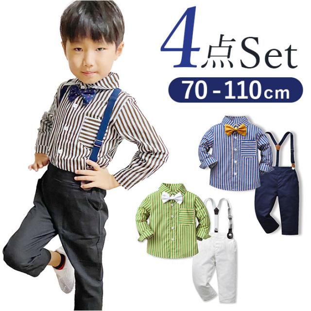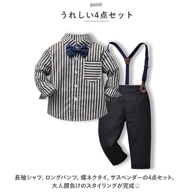 ベビー フォーマル 男の子 長袖 通販 ベビー服 赤ちゃん キッズ セット 上下セット パンツ ズボン シャツ 蝶ネクタイ リボン サスペンダー ズボン吊り パンツセット 子供服 入学式