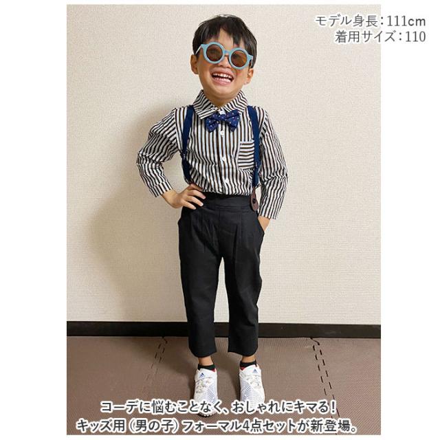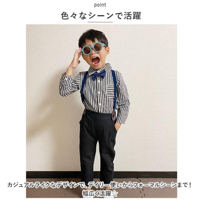 | 商品説明 | ・コーデに悩むことなく、おしゃれにキマる!キッズ用(男の子)フォーマル4点セットが新登場。 【うれしい4点セット】 ・長袖シャツ、ロングパンツ、蝶ネクタイ、サスペンダーの4点セット。大人顔負けのスタイリングが完成☆ 【ベーシックな長袖シャツ】 ・フロントボタン付きの、スタンダードなカタチに仕立てたストライプシャツ。左胸元にポケット付き。 【ストレスなく履けるロングパンツ】 ・締めつけ感の少ないバックゴム仕様。着替えがしやすく、自分サイズにフィット!左右にポケット付き。 【アクセントになる蝶ネクタイ】 ・襟元にポイントをプラスする蝶ネクタイ。シャツのボタンに簡単取り付け! 【便利なサスペンダー】 ・パンツのズリ落ちを防いだり、すっきりとしたシルエットを演出。ベルトのような締めつけもなく、お子さまでも快適。パンツのボタンに留めるだけ◎ 【色々なシーンで活躍】 ・カジュアルライクなデザインで、デイリー使いからフォーマルシーンまで!幅広く活躍☆ |