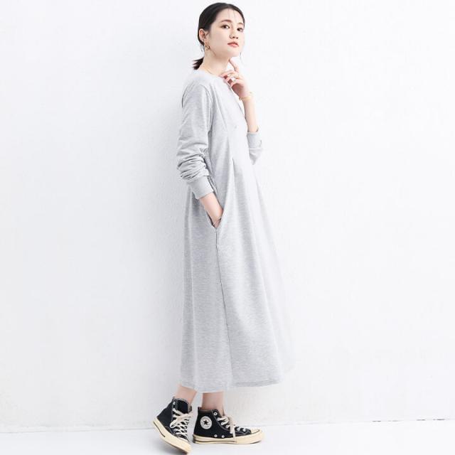 シンプルなのにお洒落に決まる大人のパーカワンピ。