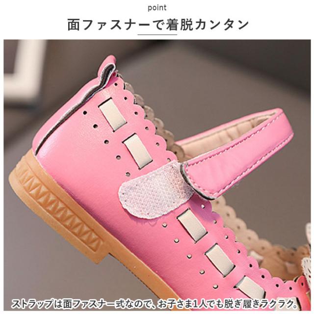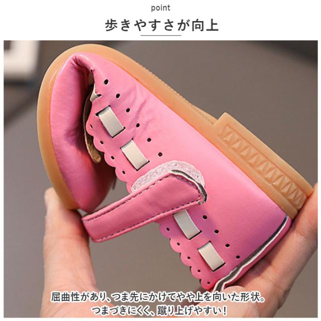 | 商品説明 | ・足元もおしゃれに♪キュートなフォーマルシューズが登場。 【可愛さアップのポイント】 ・柔らかなPU素材を使用。つま先部分に配置された立体的なリボンには、キラッと光るストーンをプラス。サイドのスカラップデザインもアクセントに。 【面ファスナーで着脱カンタン】 ・ストラップは面ファスナー式なので、お子さま1人でも脱ぎ履きラクラク。 【歩きやすさが向上】 ・屈曲性があり、つま先にかけてやや上を向いた形状。つまづきにくく、蹴り上げやすい! 【安定感のあえるソール】 ・前後の差を抑えたほぼフラットなソール。滑りにくい素材で、濡れた路面でも安心。 【フォーマルシーンで】 ・発表会やパーティーなどお呼ばれシーンで大活躍! |