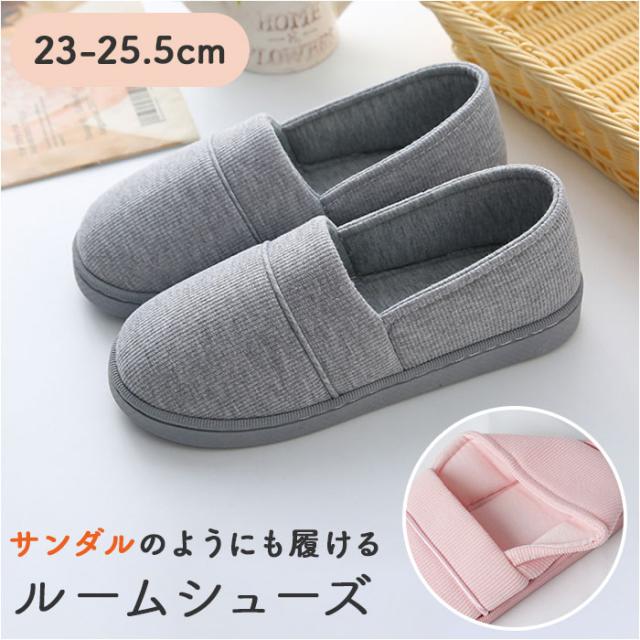 ルームシューズ かかと付き 通販 レディース 室内履き 折り畳み 携帯 洗える 洗濯 軽量 軽い ゴム底 綿100% 暖かい あったか 介護 入院 産後 軽量ルームシューズ 入院靴 病院用