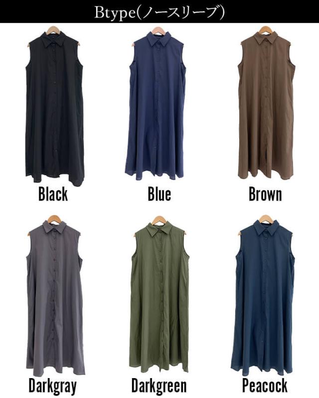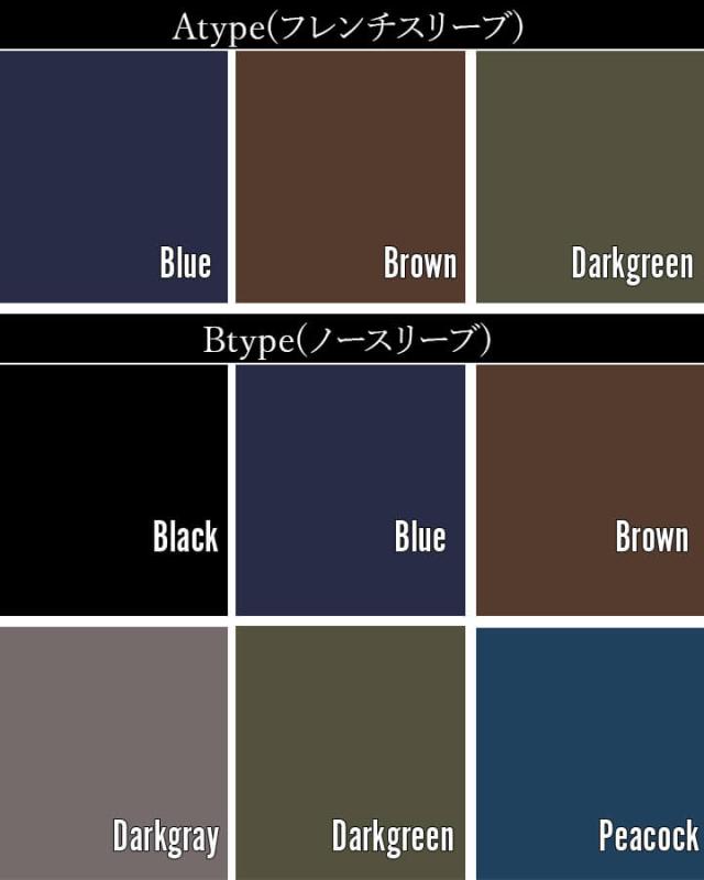 ■色:Aタイプ(フレンチスリーブ)/ブルー ブラウン ダークグリーン Bタイプ(ノースリーブ)/ブラック ブルー ブラウン ダークグレー ダークグリーン ピーコック