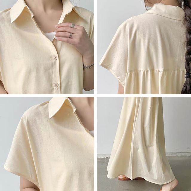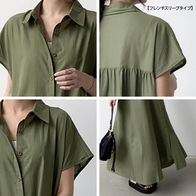 ワンピース シャツワンピース マキシワンピ マキシ丈 大きいサイズ 20代 30代 体型カバー 無地 シンプル 半袖 レディース 羽織 レイヤード フレア ギャザー コットン コットン100% 40代 50代 綿 綿100% 産後 妊婦 大人 カジュアル 大人カジュアル M L XL rt8199