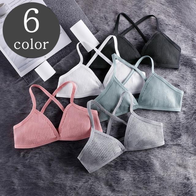 三角ブラ スポーツブラ ブラトップ レディース 女性用 インナー 下着 肌着 パッドなし 薄い バッククロス リブ 無地 単色
