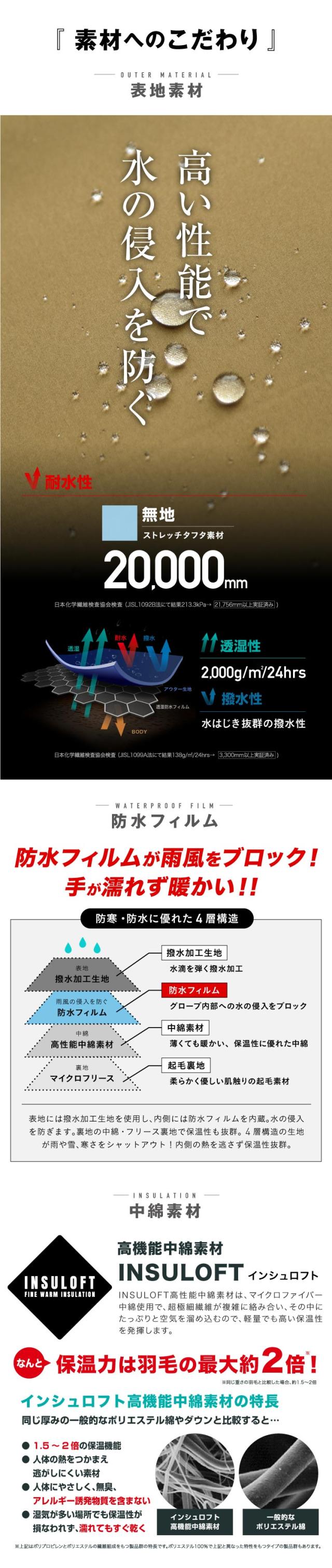 素材へのこだわり:耐水性・透湿性・撥水性に優れた透湿防水素材