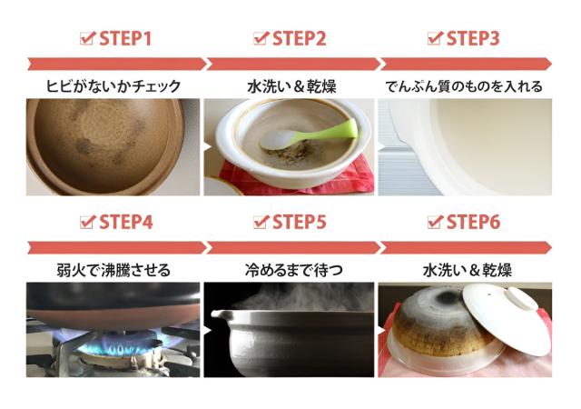 この土鍋を初めてご使用するときは、「目止め」が必要です