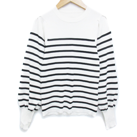 【中古】センスオブプレイス バイ アーバンリサーチ ニット カットソー 長袖 ボーダー柄 F 白 黒 レディース