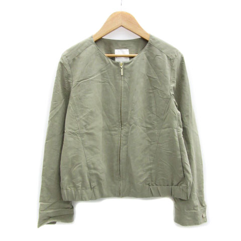 【中古】クミキョク 組曲 ノーカラジャケット ブルゾンジャケット ミドル丈 ジップアップ 2 カーキ レディース