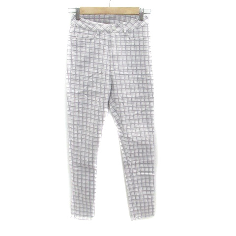 【中古】ローリーズファーム テーパードパンツ ロング丈 チェック柄 M オフホワイト 紫 パープル ■MO レディース
