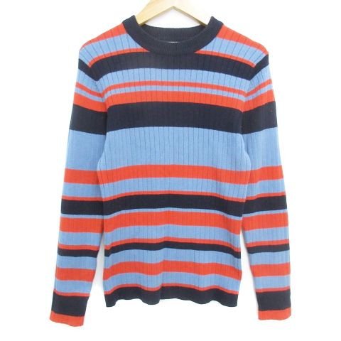 【中古】エージーバイアクアガール リブニット カットソー 長袖 クルーネック マルチボーダー柄 M 水色 紺 レディース