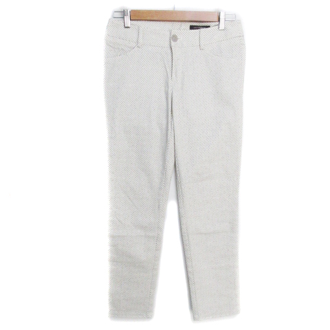 【中古】ロートレアモン スキニーパンツ ロング丈 ストレッチ素材 ダイアゴナルストライプ柄 40 白 黒 レディース