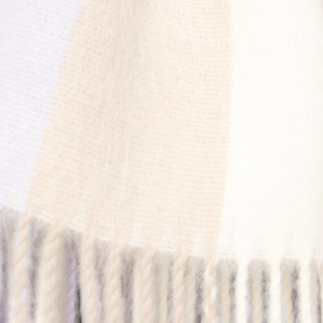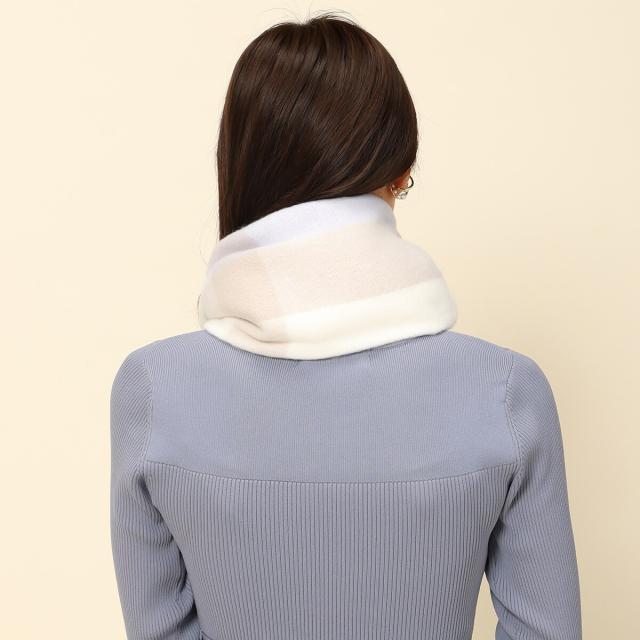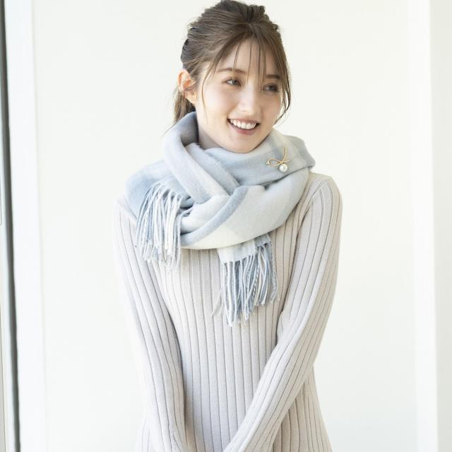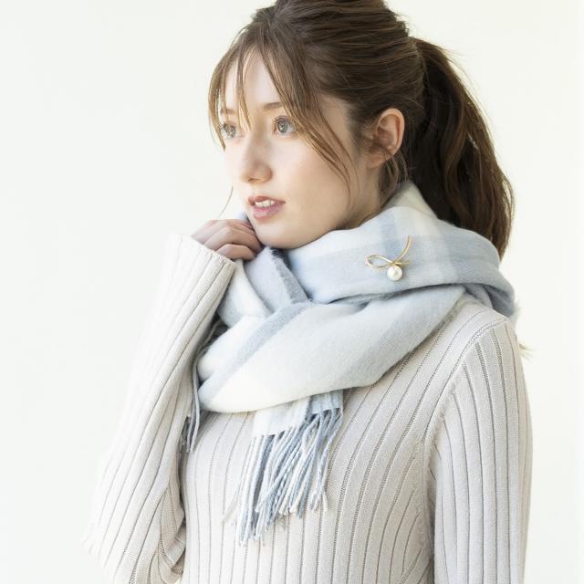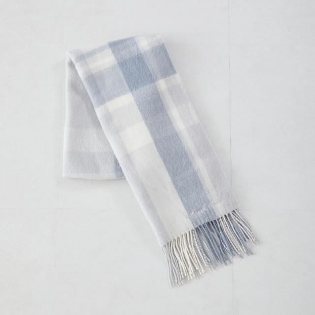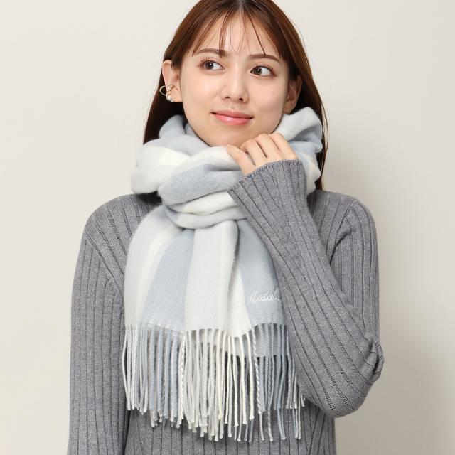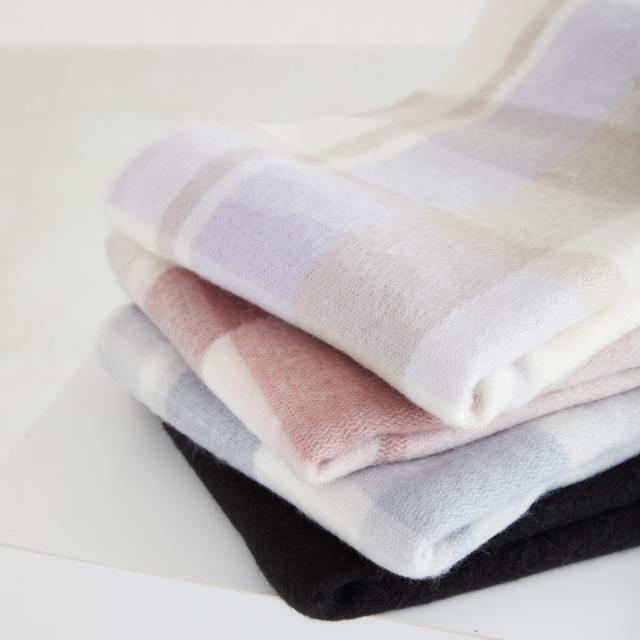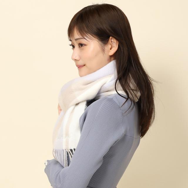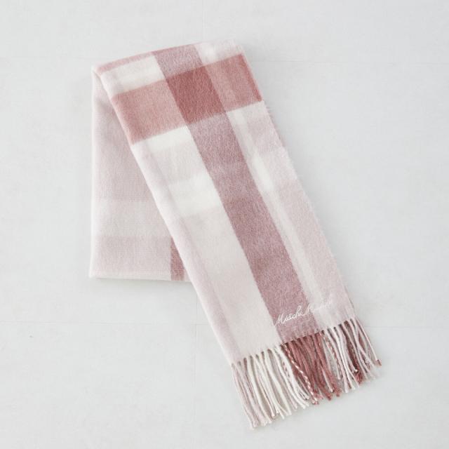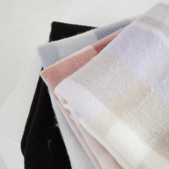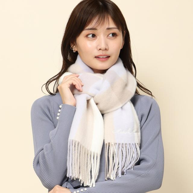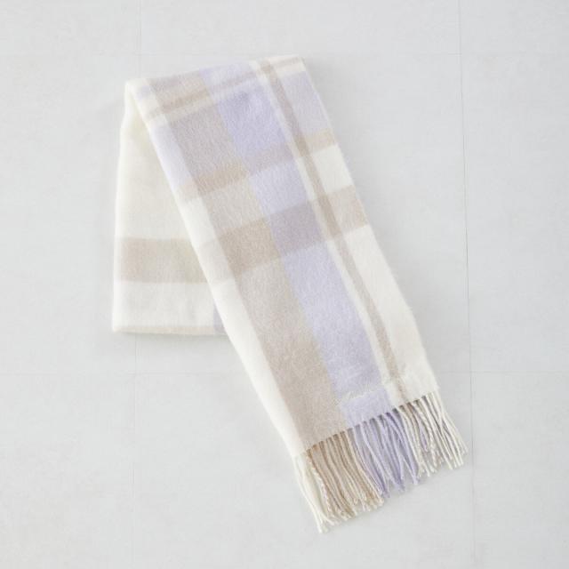 柔らかな色合いのチェック柄がガーリーな風合いを演出するマフラー。