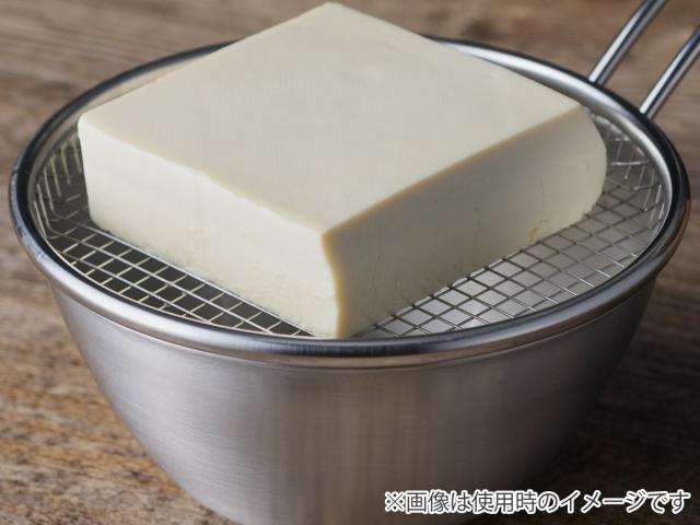 別売りの浅型ザルを一緒に使うと、さらに便利にお使いいただけます。豆腐をそのままの大きさで置けるサイズなので、水切り作業も非常にスムーズです。