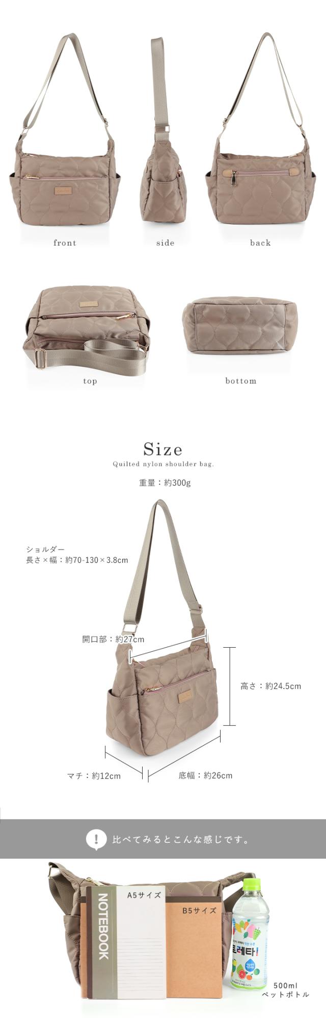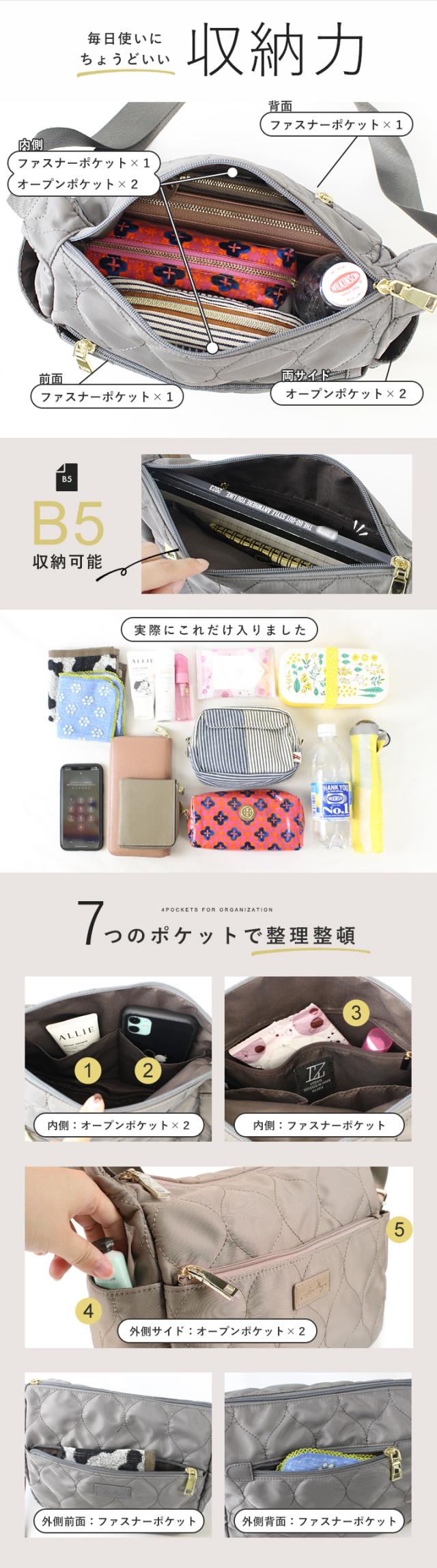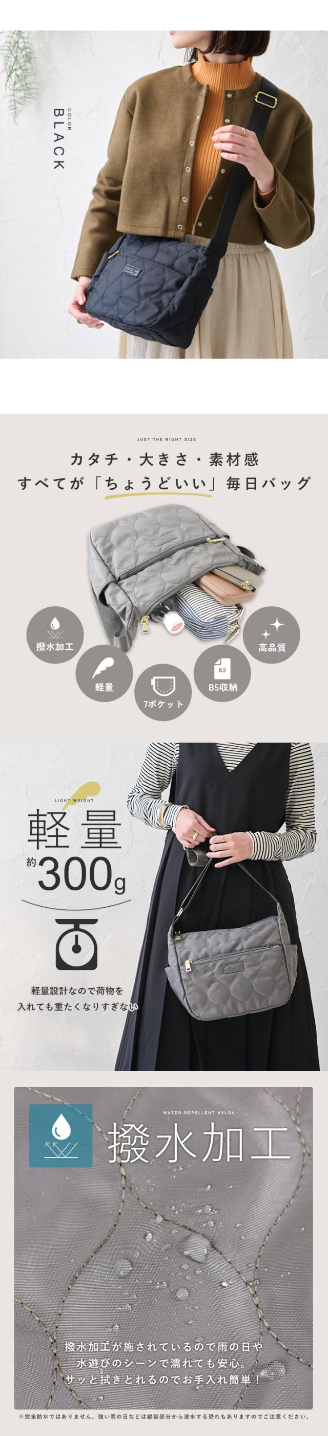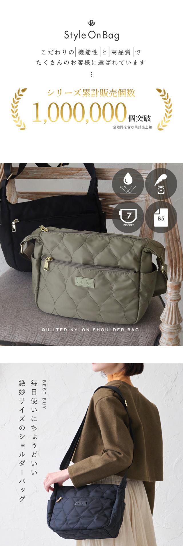 ショルダーバッグ レディース ナイロン 撥水 はっ水 キルティング 軽い 軽量 大人 きれいめ 肩掛け シンプル 斜め掛け 大人 おしゃれ B5 ファスナー かわいい上品 きれいめ LIZDAYS リズデイズ スタイルオンバッグ【lz-70511】