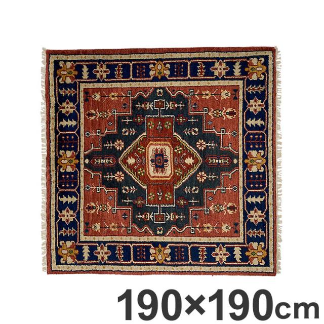 ラグ 190×190cm 柄 トライバル 部族絨毯風 ウール コットン 天然素材 オールシーズン シンプル おしゃれ 北欧 絨毯 カーペット マット リビングマット 新生活 一人暮らし(代引不可)【送料無料】