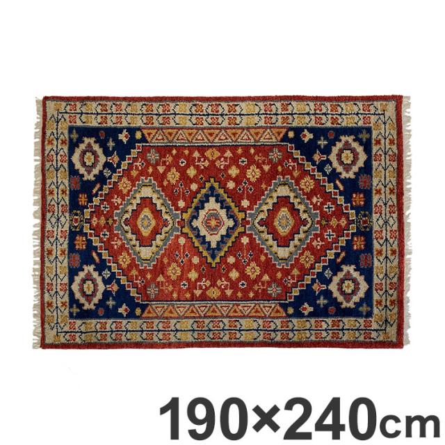 ラグ 190×240cm トライバル 部族絨毯風 ウール コットン 天然素材 オールシーズン シンプル おしゃれ 北欧 絨毯 カーペット マット リビングマット 新生活 一人暮らし(代引不可)【送料無料】