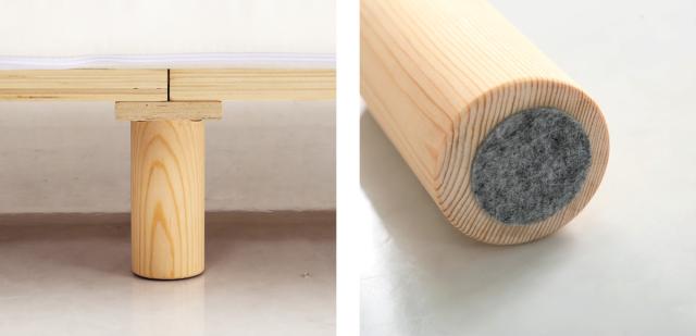 脚部に使われている風合いの良いパイン材は、強度にも優れ、長く使うほどに味わいを増していきます。キズ防止用フェルトシールが付属しているので床への傷付きも防げて安心です。