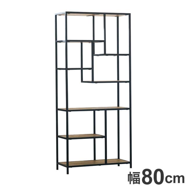 オープンシェルフ 幅80cm ハイシェルフ 天然木 オープンラック フリーラック アイアン おしゃれ 北欧 ディスプレイラック 飾り棚 ヴィンテージ アンティーク インダストリアル 雑貨 小物 収納(代引不可)【送料無料】