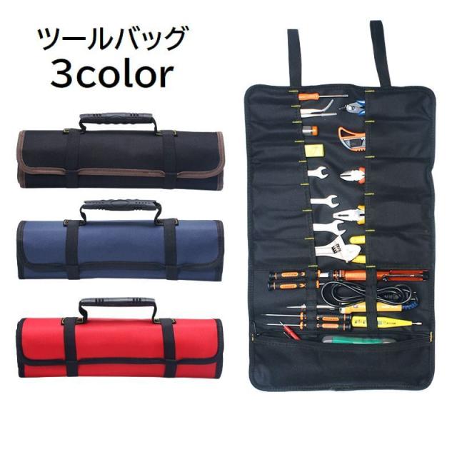 ツールバッグ 工具収納袋 工具袋 ロールバッグ オックスフォード ポケット付き 持ち手付き コンパクト 工具差し入れ 無地 ブラ