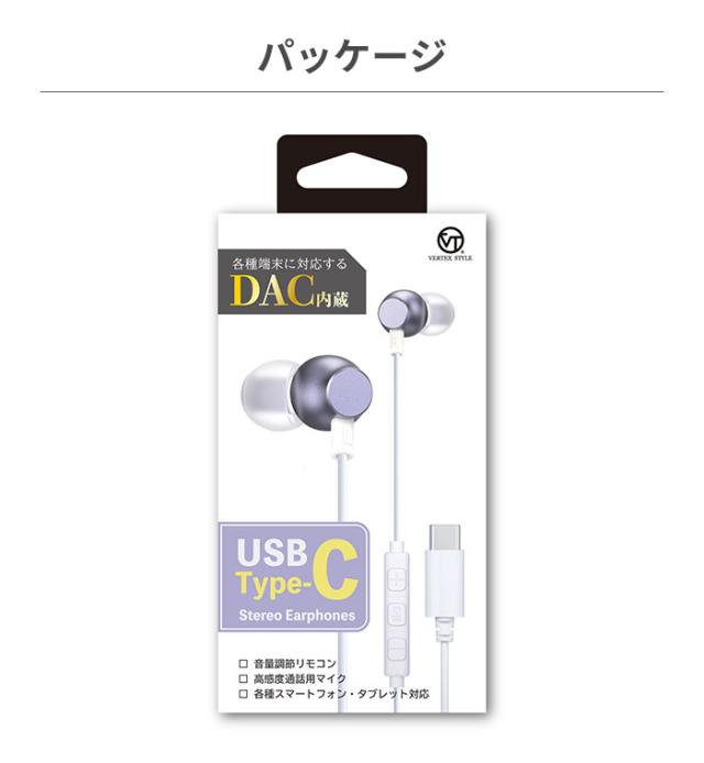 有線イヤホン type-c イヤホンマイク 有線 マイクつきイヤホン VERTEX DAC搭載 TYPE-C イヤホン マイク付き タイプC 小さい コンパクト 女性 両耳 iphone スマホ 高音質 在宅 リモート