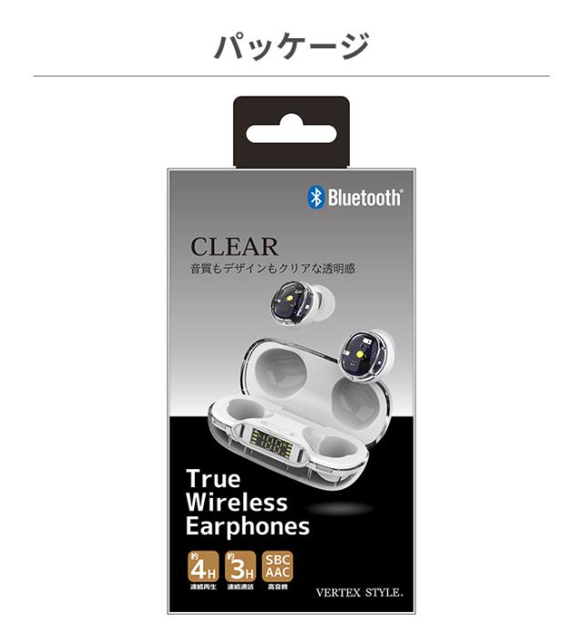 VERTEX Bluetooth5.3対応 完全ワイヤレスイヤホン CLEAR