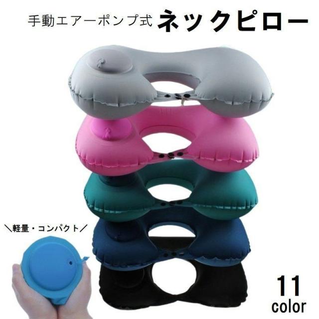 ネックピロー エアーピロー 手動プレス式 折りたたみ 旅行用品 出張 飛行機 電車 新幹線 移動 コンパクト 軽量 携帯用 空気