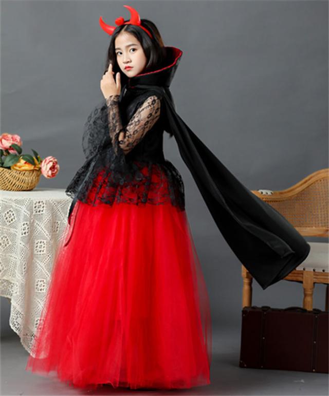 ハロウィン衣装 子供ドレス バンパイア 吸血鬼 コスチューム 子供 悪魔 お化け コスチューム 女の子 魔女 ウイッチ 仮装 ハロウィン仮装 コスプレ キッズ 子供用 100-160cm