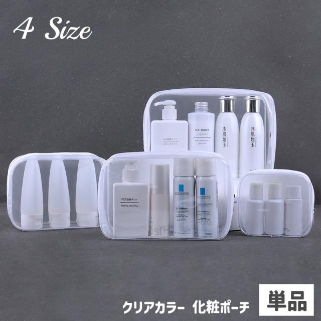 化粧ポーチ コスメポーチ トラベルポーチ 単品 小物入れ 旅行用品 クリアポーチ スクエア型 ファスナー 撥水 マチあり 半透明