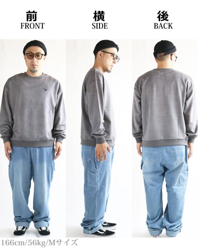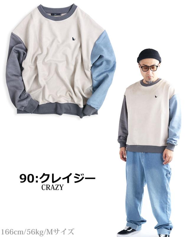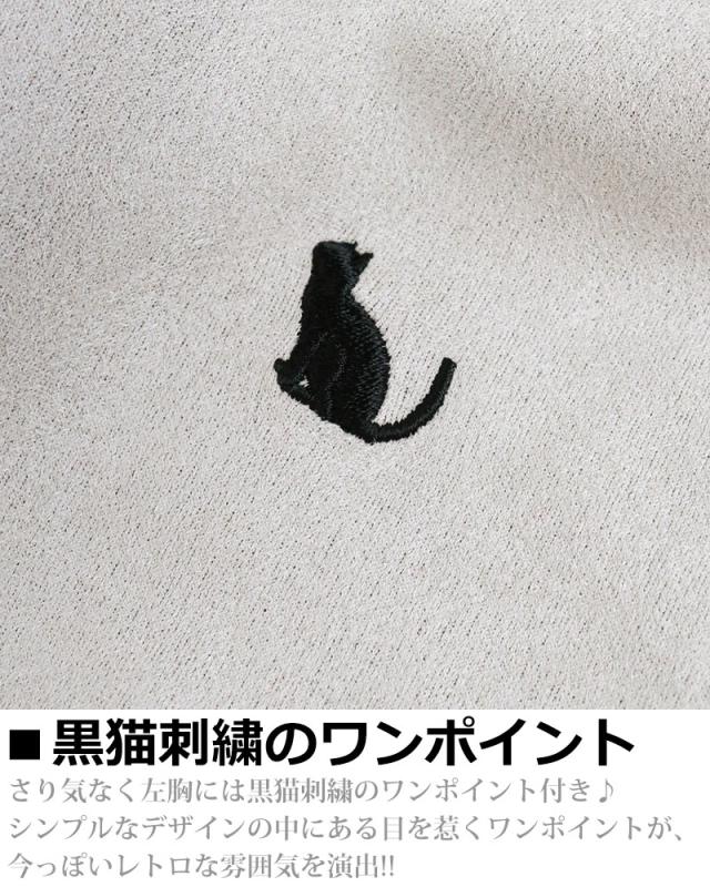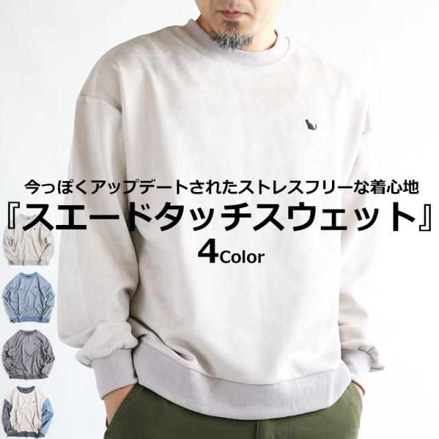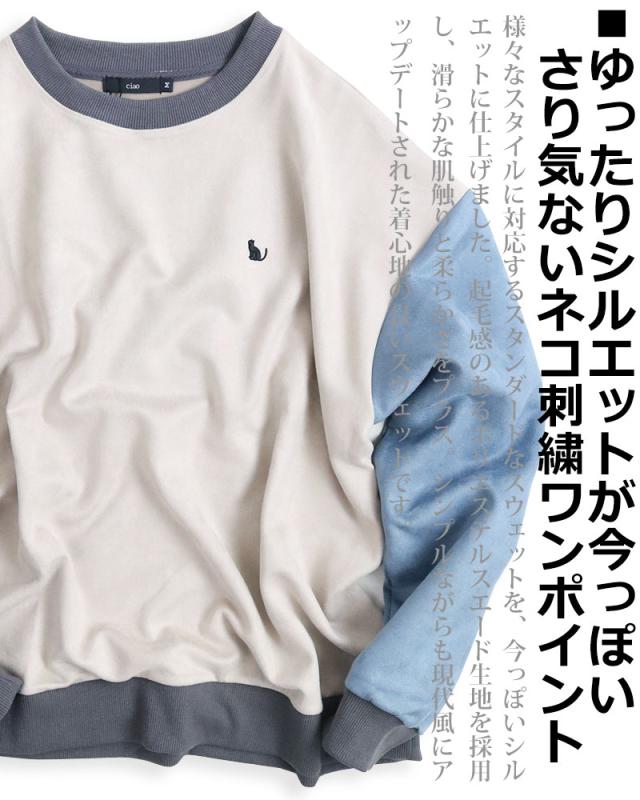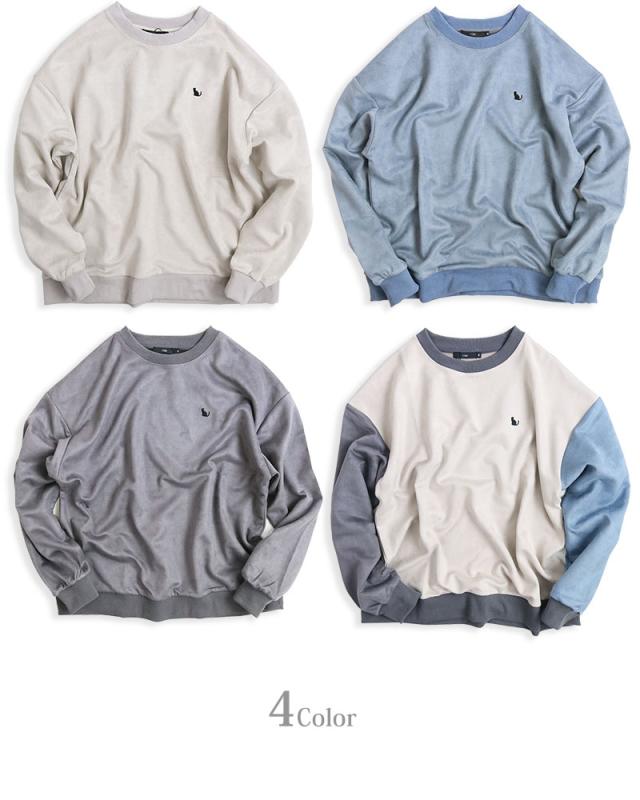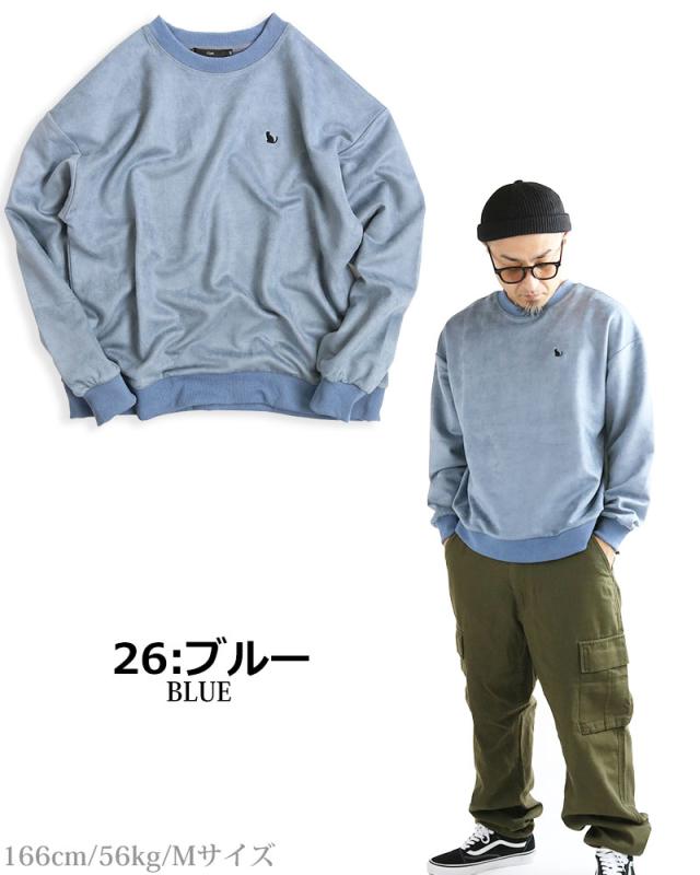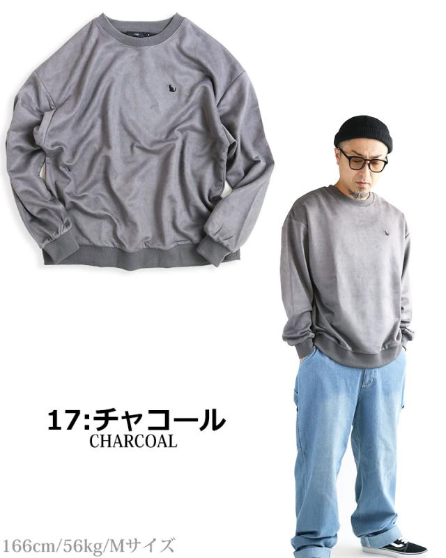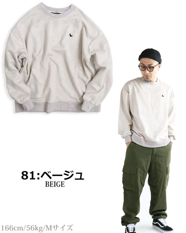 ネコ刺繍 スエードタッチ スウェット トレーナー メンズ レディース スエット スウェード ビッグシルエット ワイドシルエット ルーズシルエット