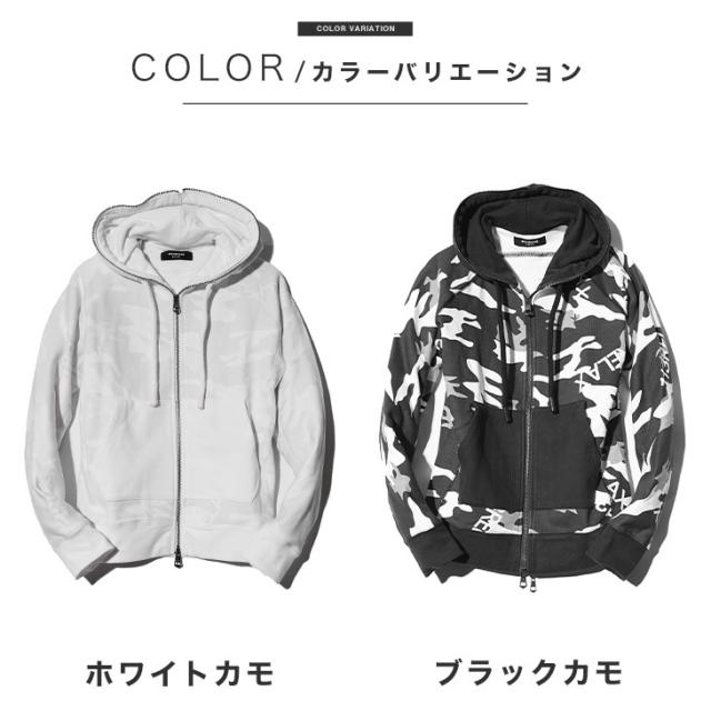 ウノピュウノウグァーレトレ ジップパーカー メンズ ブランド スウェット パーカー メンズ ブランドロゴ カモフラ柄 白 黒 ホワイト ブラック おしゃれ 秋 秋服 秋物 秋冬 メンズファッション リゾート サーフ系 ちょいワル USO-23072