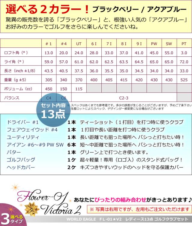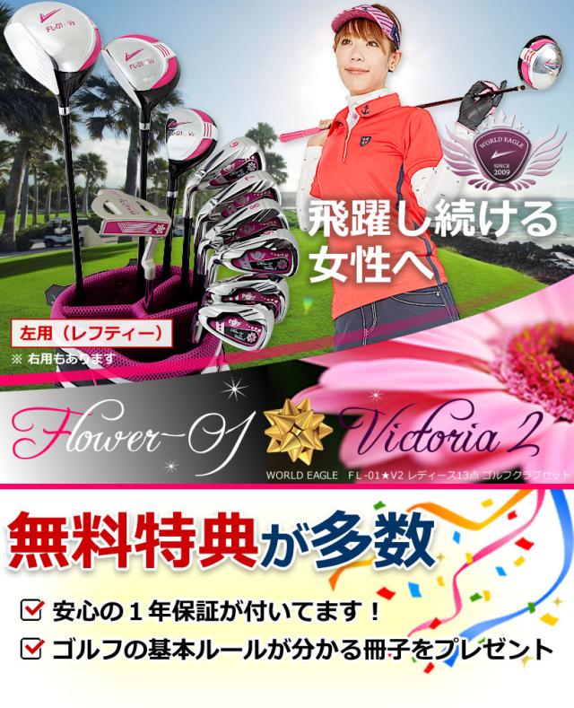 ワールドイーグル 左用 レフティー FL-01★V2 レディース13点クラブセット スタンド式軽量キャディバッグ付!