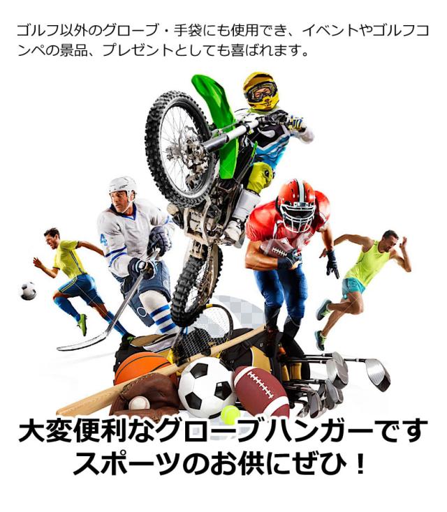 ゴルフ以外のグローブ・手袋にも使用でき、イベントやゴルフコンペの景品、プレゼントとしても喜ばれます。大変便利なグローブハンガーです。スポーツのお供にぜひ!