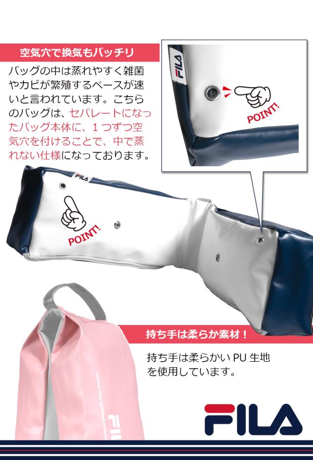 素材 :表:PU 内生地:ナイロン(FILA専用プリント生地)