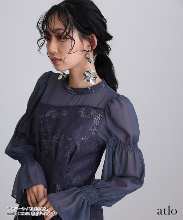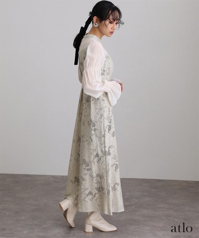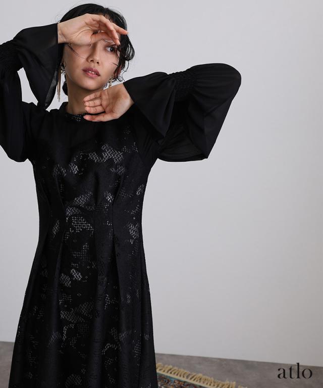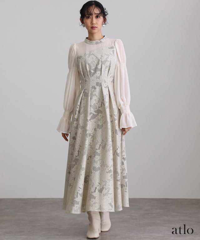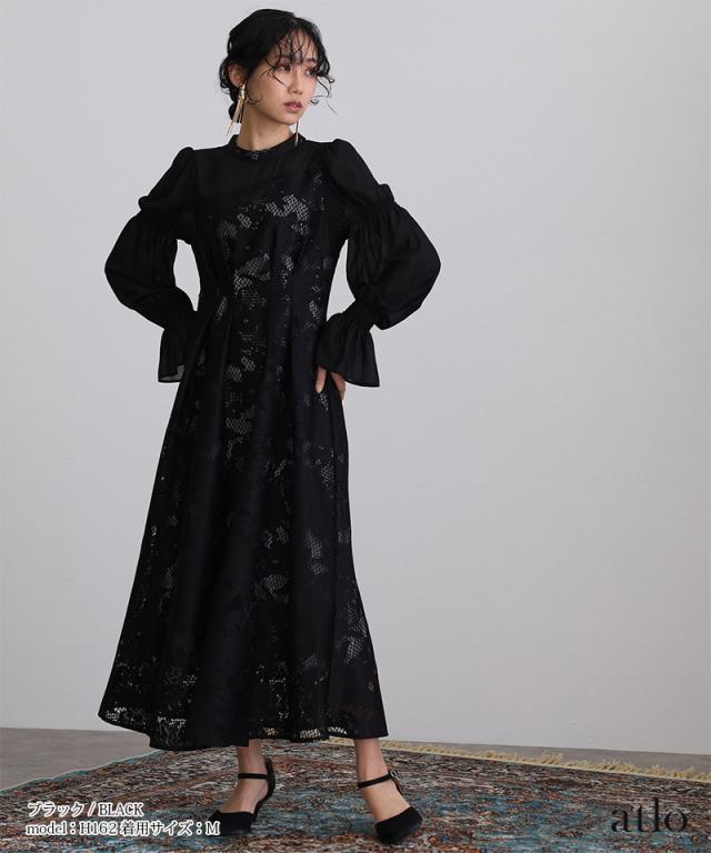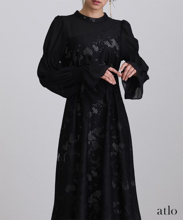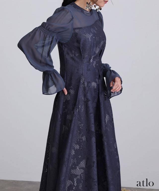 ほどよい厚みと光沢感のあるレースを使用した高級感漂うドレス。