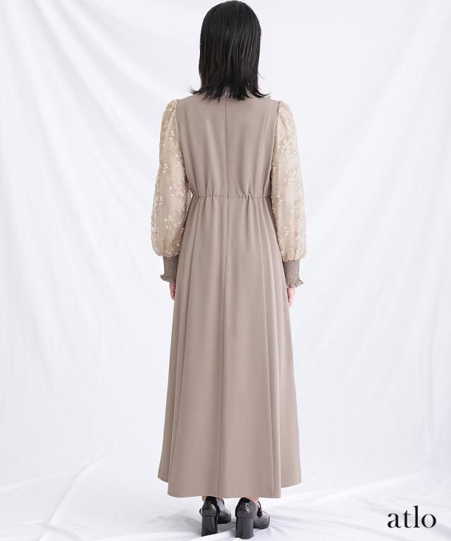 スリーブエンブロイダリードレス【804231978】20代・30代・40代・54代長袖・膝丈・セットアップ・スカート・体型カバー・ジャケット・テーラード・スーツ・大きいサイズなど・即日発送・送料無料結婚式・婚活・披露宴・顔合わせ・二次会・同窓会・お呼ばれ・食事会・謝恩会・親族・七五三・お宮参り・冠婚葬祭・弔事・女子会・デート・入学式・卒業式・入園式・卒園式・ママ・マタニティー・セレモニー・セレブ・パーティー