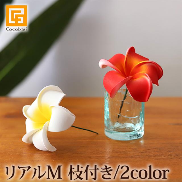 プルメリアの造花M リアル (枝付き) レッド パーツ 南国 トロピカル バリ雑貨 ハワイ バリ風 インテリア ヘアピック