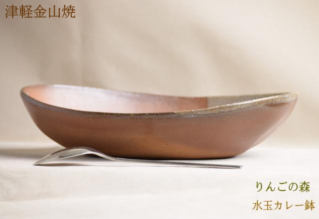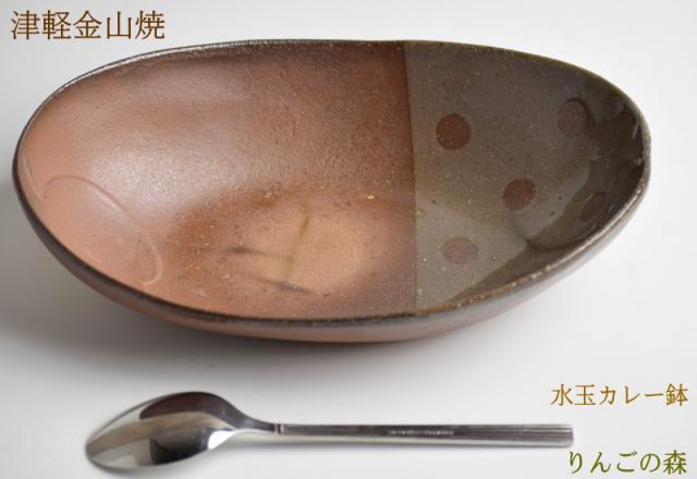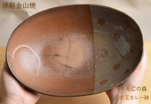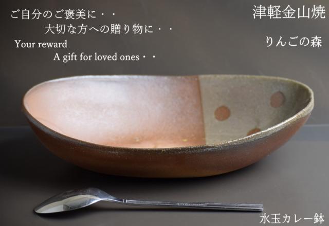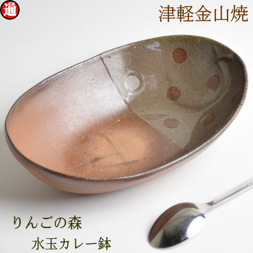 津軽金山焼 焼き締め りんごの森 水玉カレー鉢 陶器