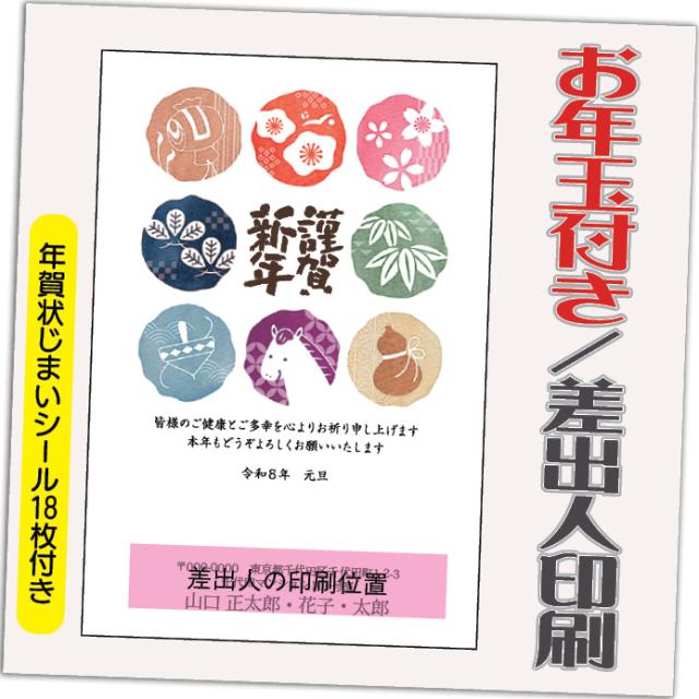 年賀状 年賀はがき 20枚 お年玉付き 年賀状じまいシール付 2026年 差出人印刷込み(デザイン:GW13) うま 馬 午年 かわいい イラスト